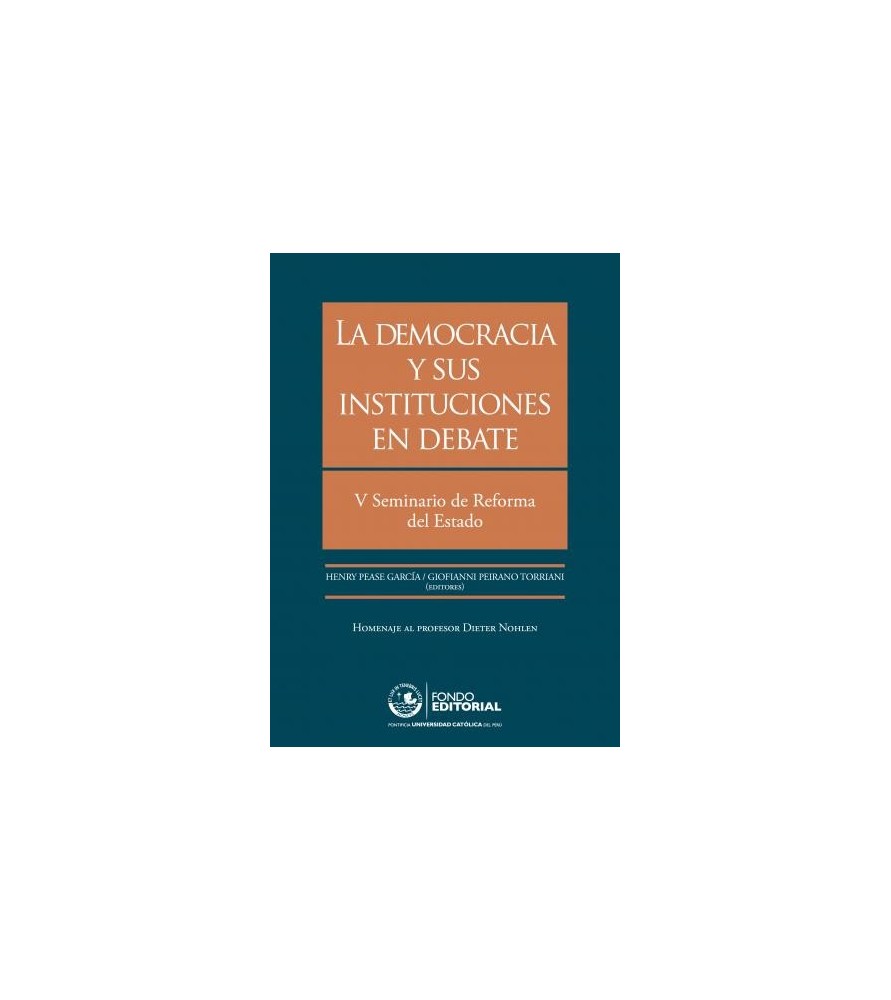 La democracia y sus instituciones en debate recoge los aportes y recomendaciones más actuales, elaborados por los alumnos del Doctorado en Ciencia Política y profesores de la Pontificia Universidad Católica del Perú en el Seminario de Reforma del Estado 2010, y ha sido editado por Henry Pease García y Giofanni Peirano. Se destaca la participación de connotados investigadores internacionales como Dieter Nohlen, de la Universidad de Heildelberg, y Steve Levitsky, de la Universidad de Harvard. En esa ocasión, el profesor Nohlen desarrolló en conferencia magistral su tesis sobre el contexto en el análisis institucional y recibió el doctorado honoris causa de la PUCP.