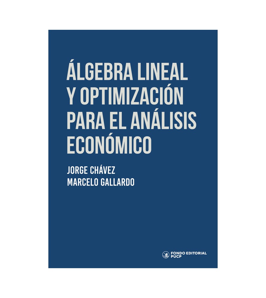 Álgebra lineal y optimización para el análisis económico ofrece una exposición rigurosa y amplia de los fundamentos matemáticos que sustentan la teoría económica moderna. El libro se inicia con el estudio del álgebra lineal —espacios vectoriales, sistemas de ecuaciones, valores y vectores propios, formas cuadráticas, etcétera— y avanza hacia la topología, con el objetivo de introducir formalmente las nociones de convergencia y cercanía en espacios vectoriales normados. Luego, se estudian, en sendos capítulos, los conjuntos y funciones convexas, lo que permite abordar exhaustivamente la optimización estática con y sin restricciones. Finalmente, se introduce la teoría del equilibrio general y los teoremas fundamentales del bienestar.